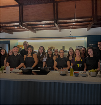 Quando a proposta é sair do óbvio e criar conexões verdadeiras, a cozinha se torna um cenário perfeito. Foi com esse espírito que a Globo levou 26 colaboradores para uma experiência de Team Building Gastronômico no Taste House, nosso espaço exclusivo para vivências corporativas.